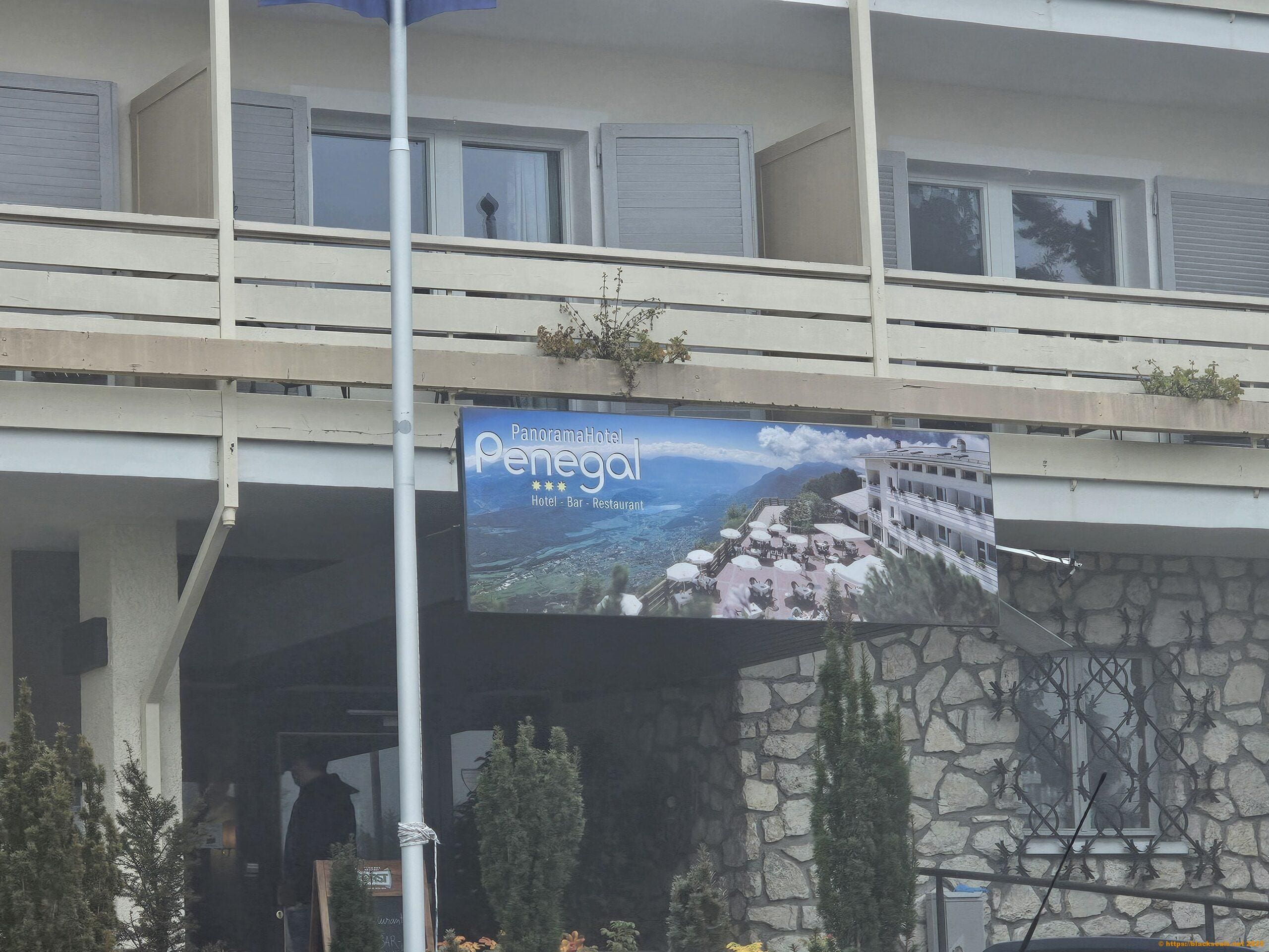 Die Mittagspause findet beim Restaurant Panorama Hotel Penegal statt. Eigentlich eine wirklich tolle Aussicht – nur nicht heute. Da ist alles grau in grau. Ich selbst nutze die Gelegenheit für einen Kaiserschmarrn.