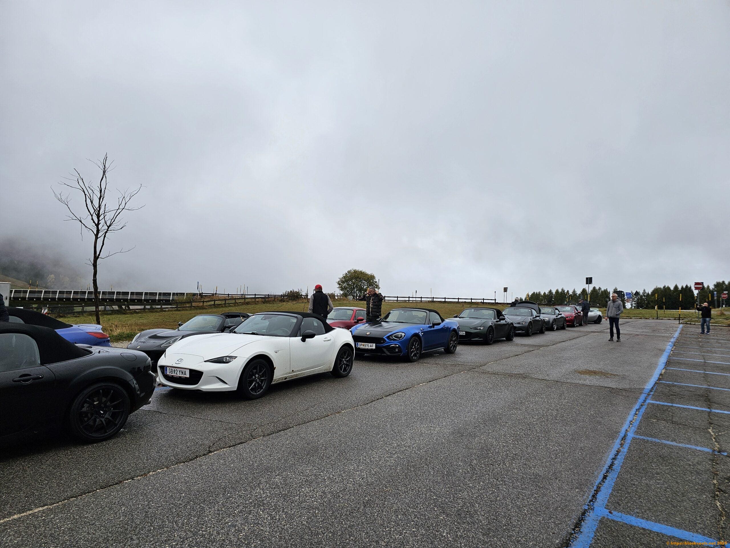 Um die 10°C und nebeligen Himmel beginnt der erste Tag in Italien. Unterwegs mit dem Abarth 124 Spider führt es von unserem Standort aus in Richtung Norden auf der Suche nach Sonnenschein.